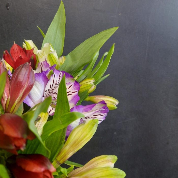 Лента атласная – 2 шт.альстромерия микс – 27 шт.