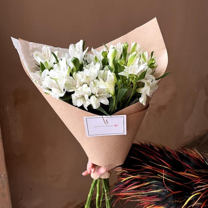 Альстромерия белая – 7 шт.Дизайнерская упаковка – 1 шт.