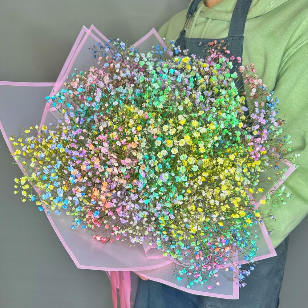 Гранд букет из цветной гипсофилы "Охапка радуги"