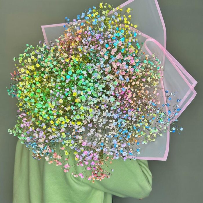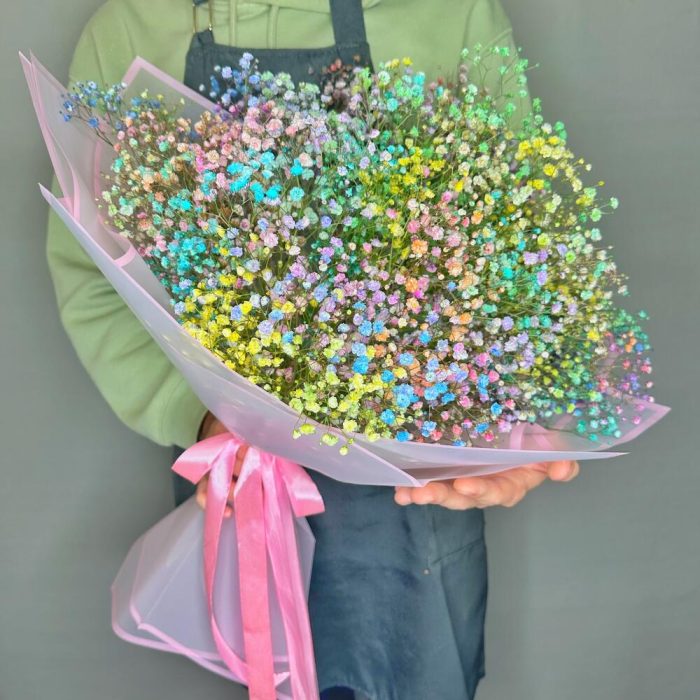 Гранд букет из цветной гипсофилы “Охапка радуги”