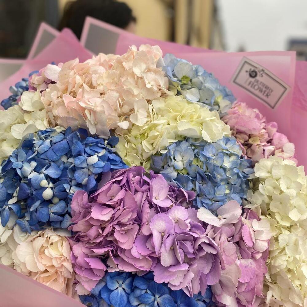 Букет из 15 разноцветных гортензий “Алансон”