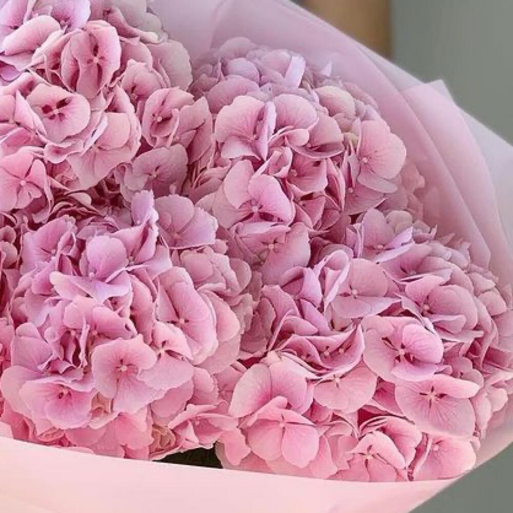 Гортензия розовая – 5 шт.Упаковка дизайнерская – 1 шт.Лента атласная – 2 шт.Открыточка с вашими пожеланиями – 1 шт.хорошее настроение – 100 шт.инструкция по уходу за цветами – 1 шт.коробка переноска – 1 шт.Кризал – 1 шт.