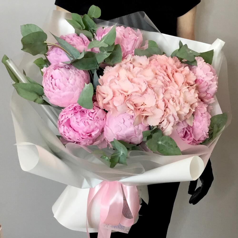 Букет с пионами и гортензией “Мечта”
