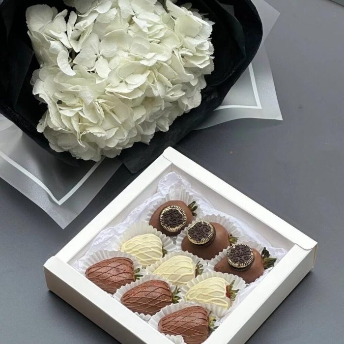 Клубника в шоколаде – 9 шт. Гортензия – 1 шт.