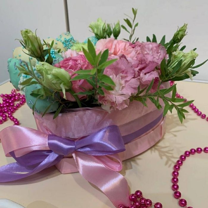 “Атлас☁️” – цветочная композиция с зефиром в деревянном ящике