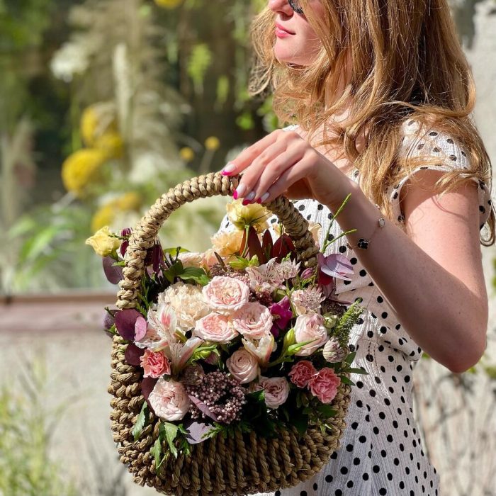 Корзина с цветами кремовая