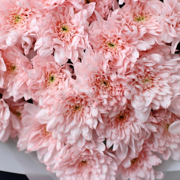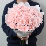Лента атласная – 1 шт.Упаковка дизайнерская – 4 шт.Хризантема кустовая крашенная – 7 шт.