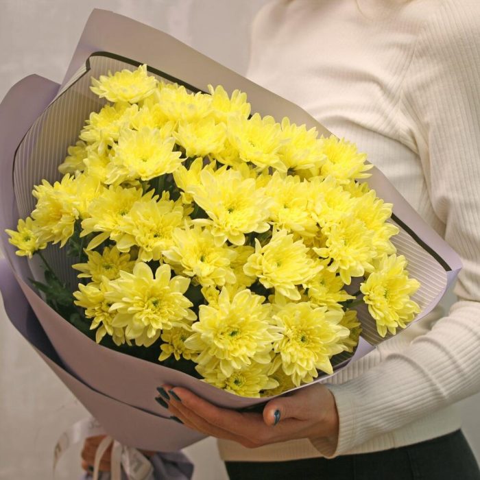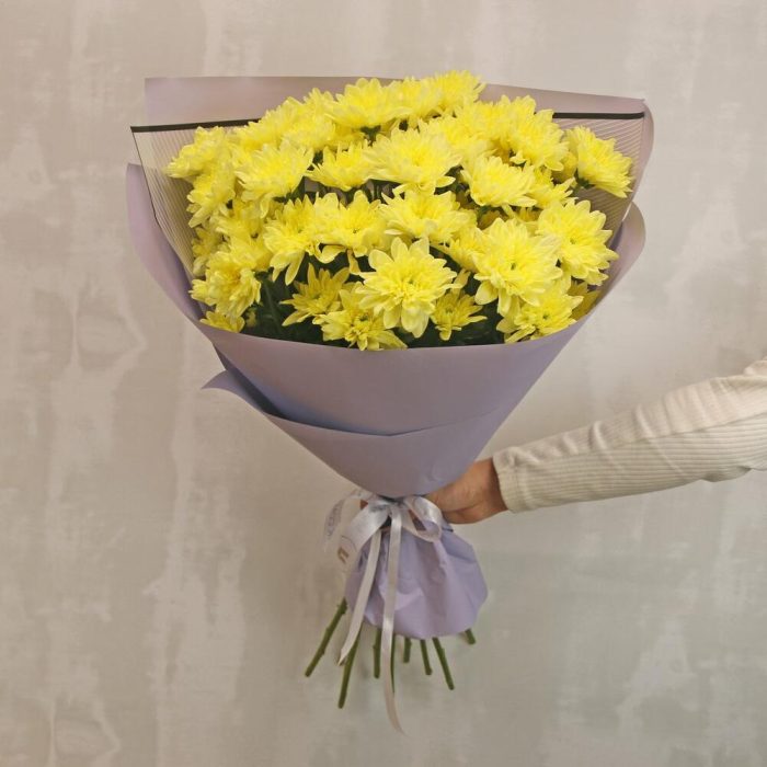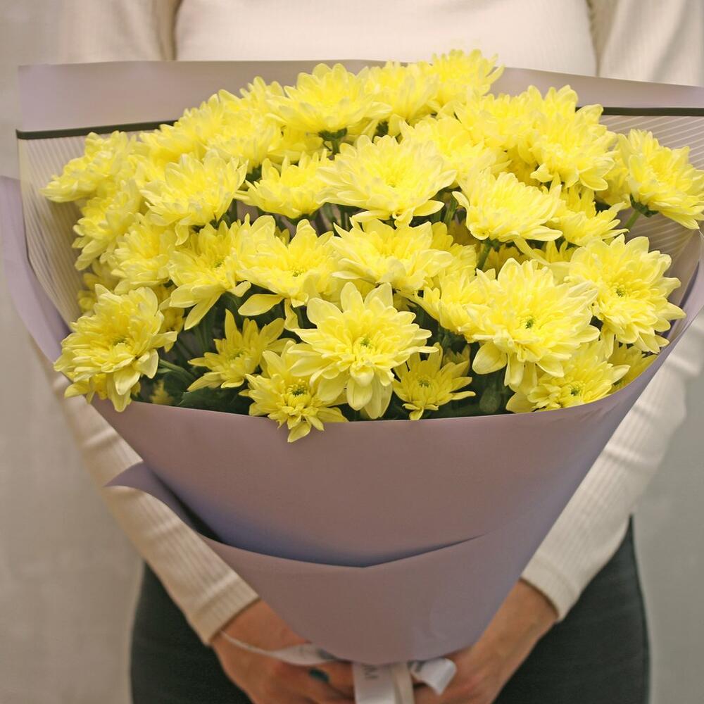 Букет из 9 желтых кустовых хризантем в стильной упаковке