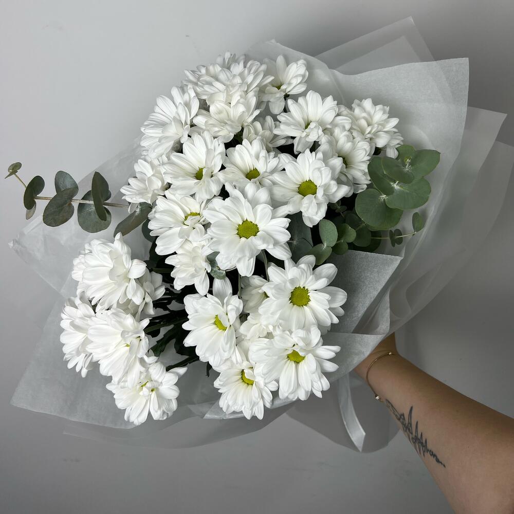 15 белых кустовых хризантем