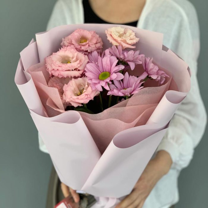 Альстромерии, Гвоздики, Кустовые розы, Лизиантусы, Розы, Хризантемы