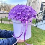 “Сиреневый туман” – композиция из гипсофилы в шляпной коробке