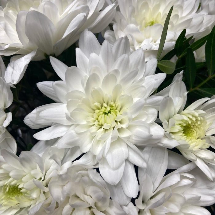 Хризантема кустовая – 7 шт.Зелень – 1 шт.Корзина плетеная – 1 шт.Оазис флористический – 1 шт.