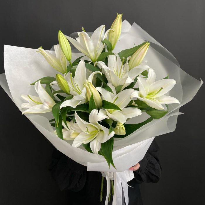 Монобукет из 5 ароматных белых лилий