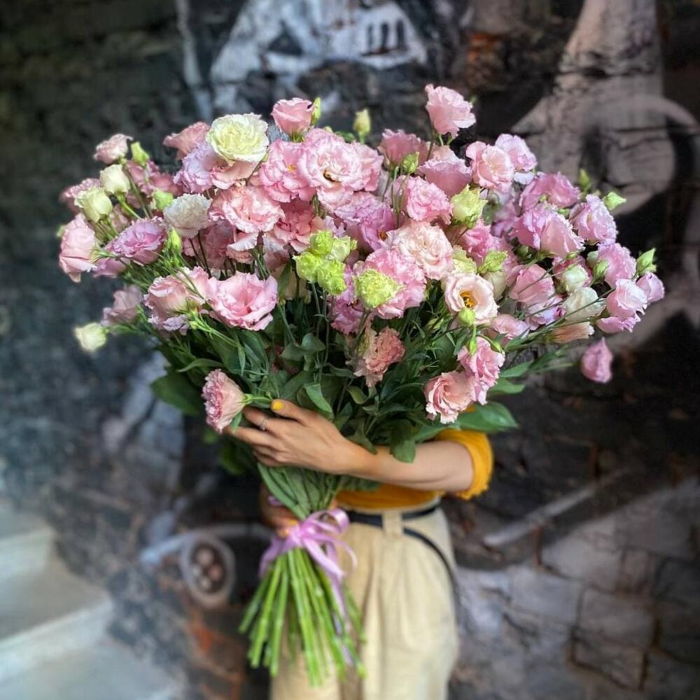 Букет из 39 розовых эустом (лизиантусов) в стильной упаковке “Яснорада”