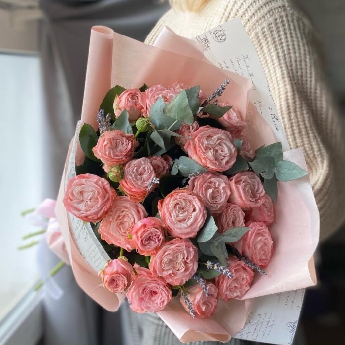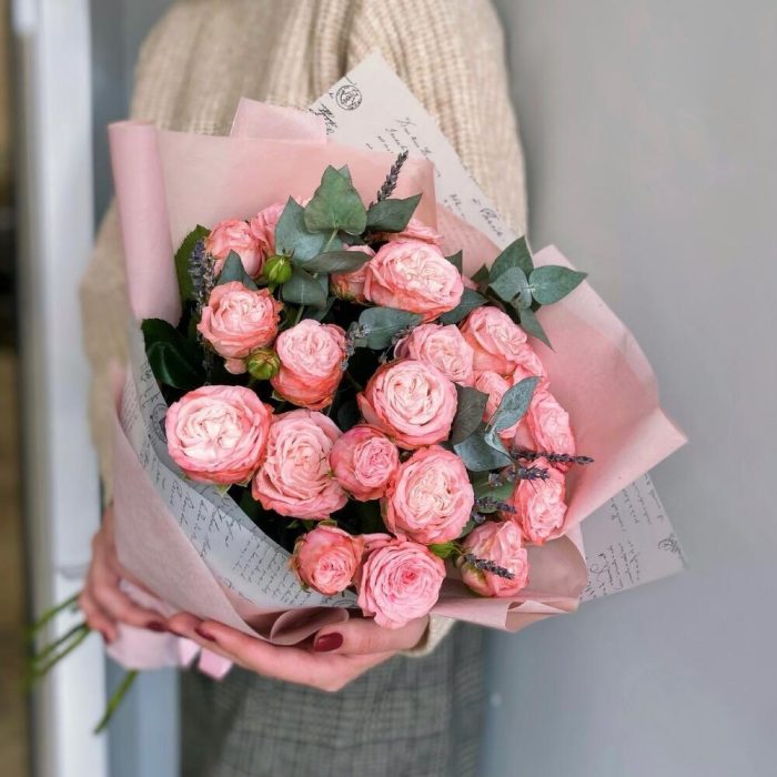 15 кустовых пионовидных роз сильва пинк. Букет 24 KimFlo
