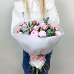 Букет из розовых пионов Premium 11 шт с эвкалиптом