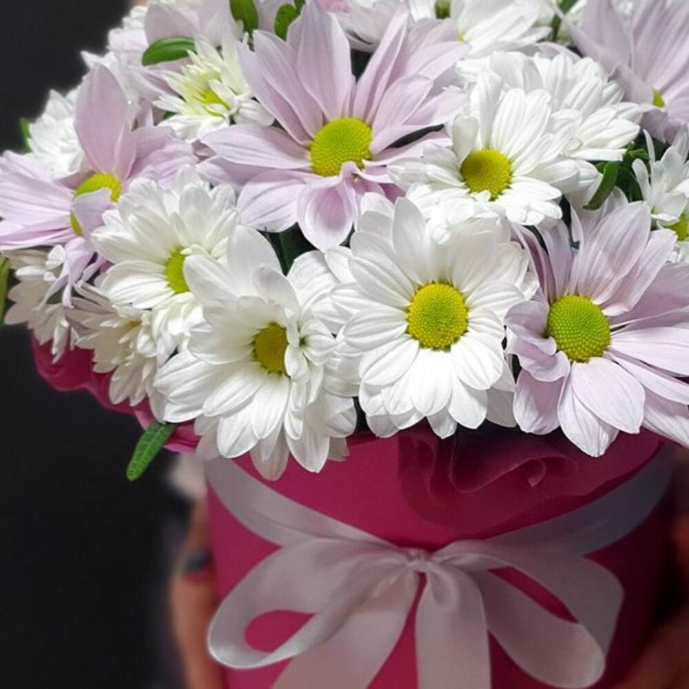 Розовые ромашки в коробке