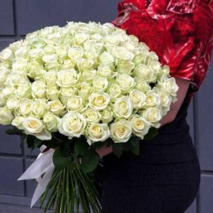 Лента – 1 шт.Крафт – 2 шт.розы 101 штука белая 70 см – 101 шт.