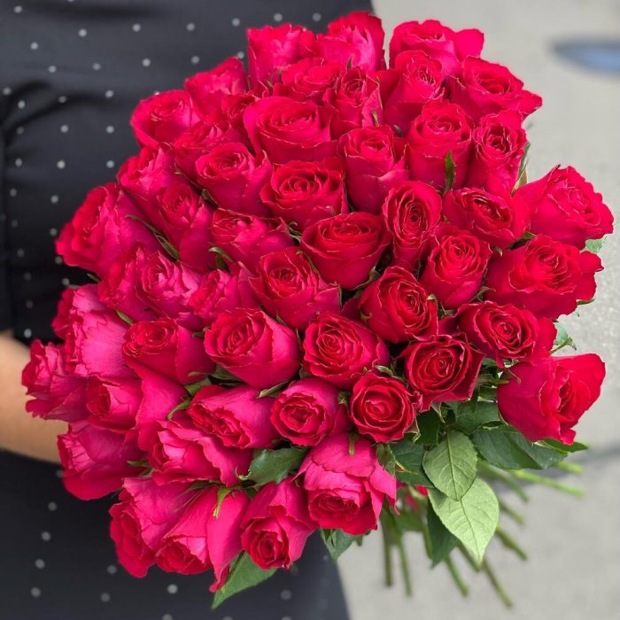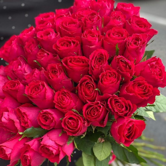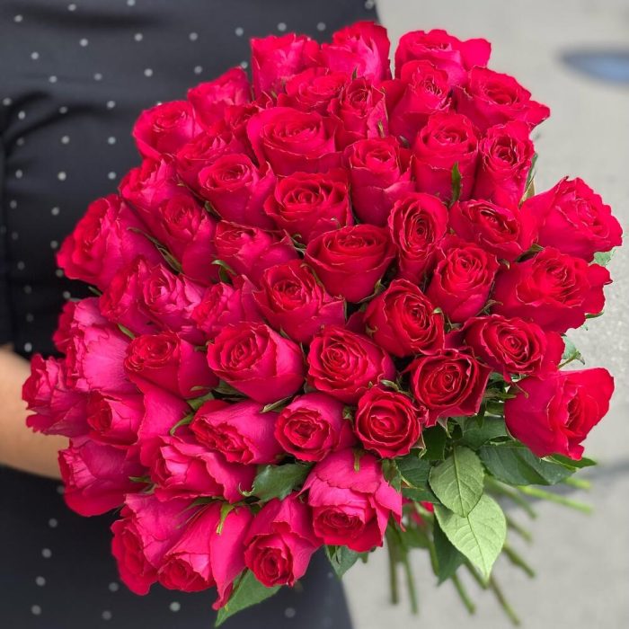 Лента атласная – 1 шт.Упаковка дизайнерская – 1 шт.роза кения 50 см – 51 шт.
