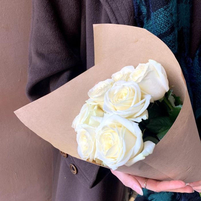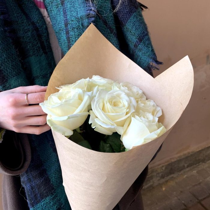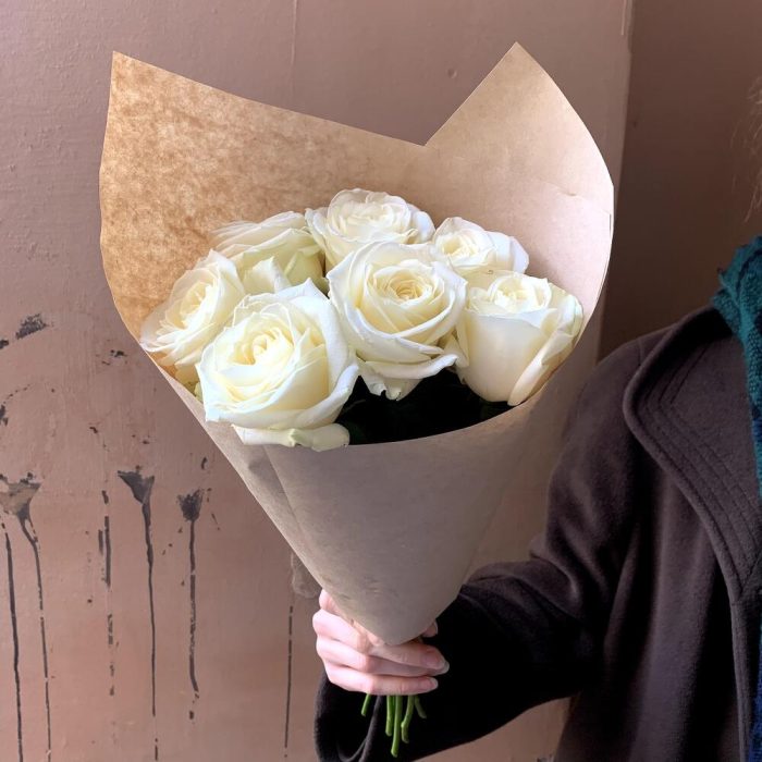 Крафт упаковка – 1 шт.белая роза россия – 7 шт.