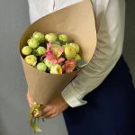 Авторский букет из пионовидных роз в крафт упаковке