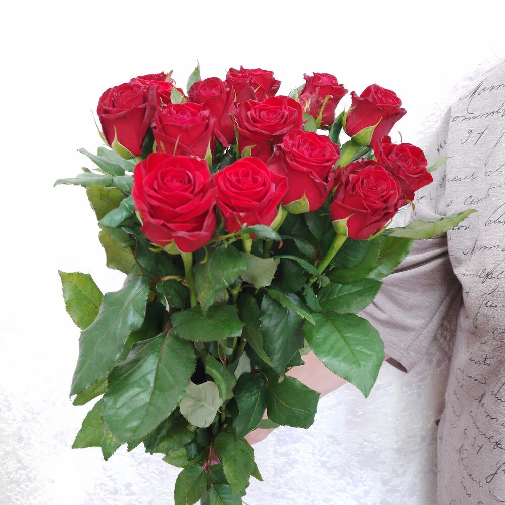 Лента атласная – 1 шт.Роза россия 70 см – 15 шт.