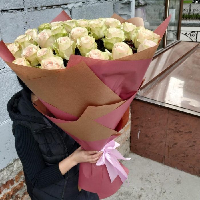 Роза Эквадор – 35 шт.Лента атласная – 1 шт.Упаковка дизайнерская – 1 шт.