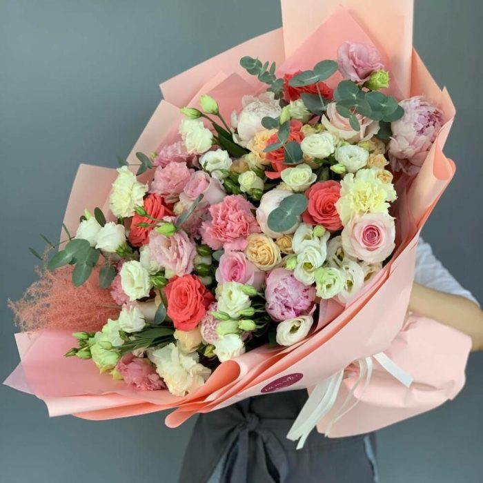 Кустовые розы, Лизиантусы, Розы, Сухоцвет