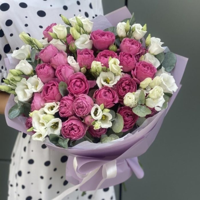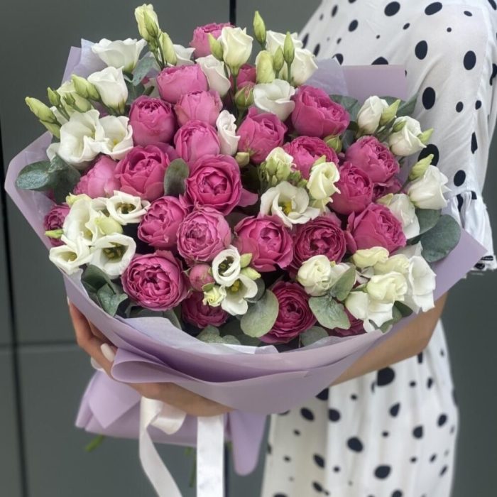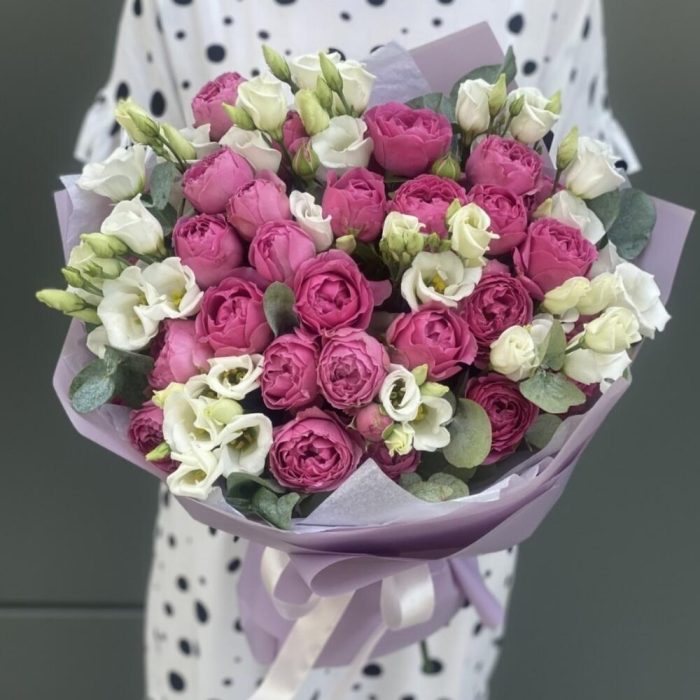 Альстромерии, Кустовые розы, Лизиантусы, Пионовидные розы, Розы, Ромашки