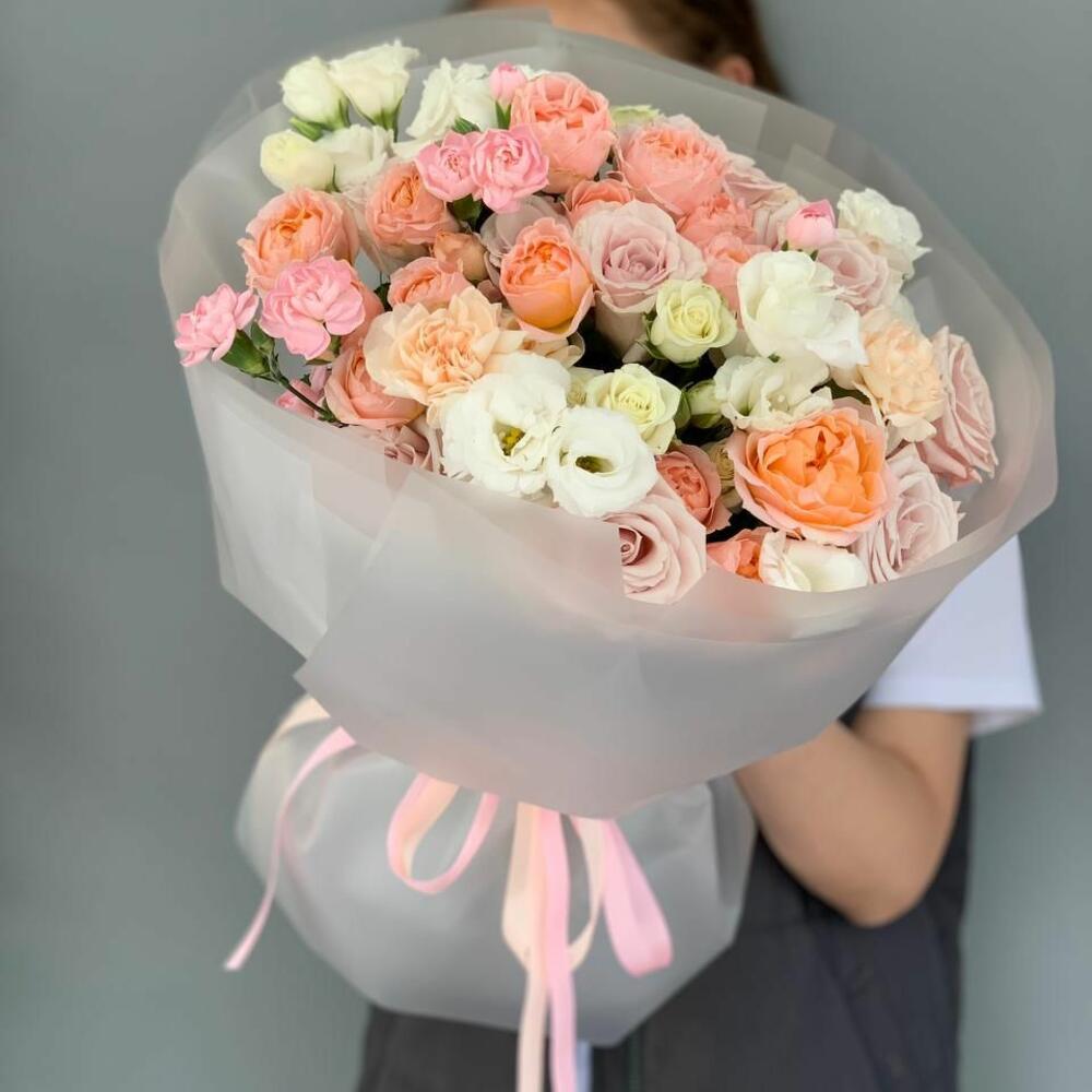 Гвоздики, Кустовые розы, Пионовидные розы, Розы