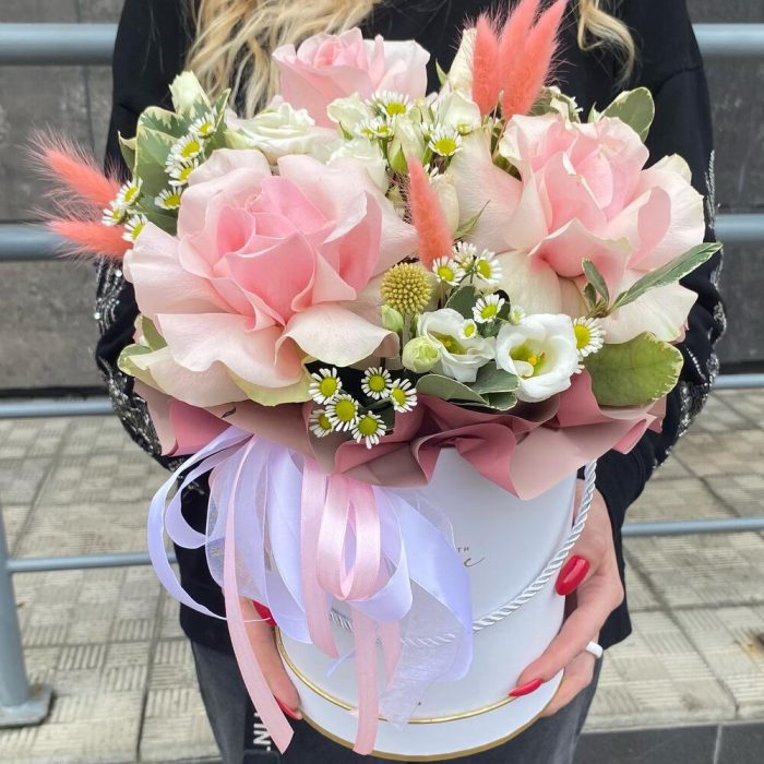 “В твоих глазах”: нежная шляпная коробка с французскими розами