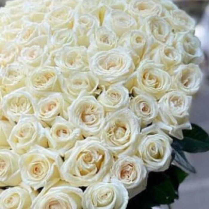 Роза белая – 101 шт.Лента атласная – 2 шт.Открыточка с вашими пожеланиями – 1 шт.хорошее настроение – 100 шт.инструкция по уходу за цветами – 1 шт.коробка переноска – 1 шт.Кризал – 1 шт.