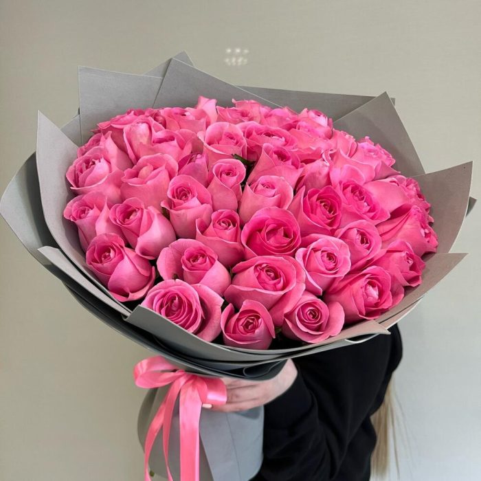 Роза – 45 шт.Лента атласная – 2 шт.Упаковка дизайнерская – 2 шт.