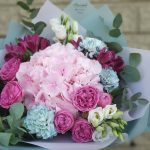 Альстромерии, Гортензии, Кустовые розы, Лизиантусы, Розы, Хризантемы