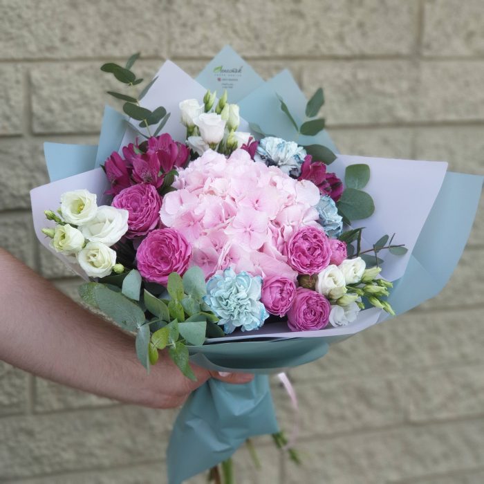 “Эвкалиптическая роскошь” гортензия и пионовидная кустовая роза