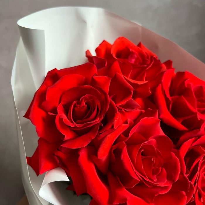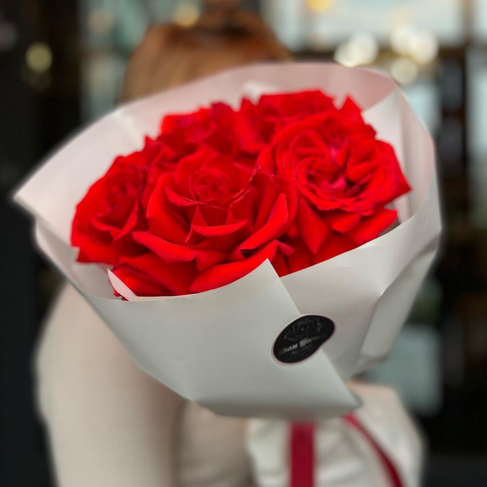 декоративная упаковка – 1 шт.Атласная лента – 1 шт.Роза Нина – 5 шт.