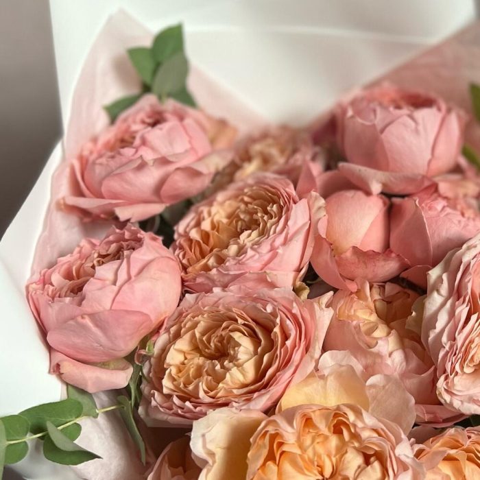 Букет из кустовой пионовидной розы "Mansfield Park"