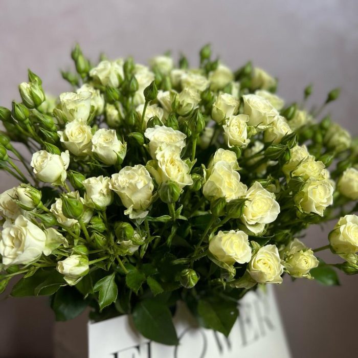 кустовая роза snowflake – 15 шт.Атласная лента – 1 шт.
