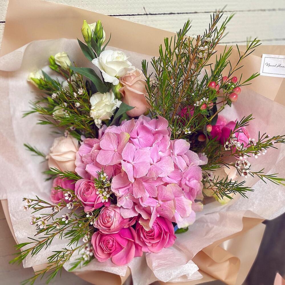 Гвоздики, Кустовые розы, Лизиантусы, Пионовидные розы, Розы