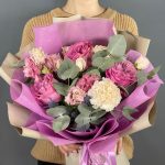 Букет с молочной гвоздикой «Черничный йогурт»