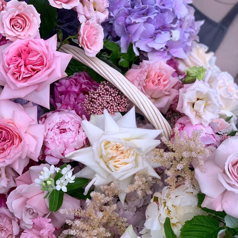 Альстромерии, Кустовые розы, Лизиантусы, Пионовидные розы, Розы, Ромашки