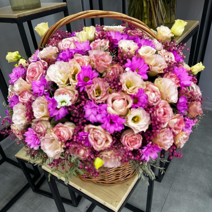 Метки: от 5000 руб, цветы в корзине