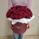 Роза красная 60 см – 51 шт.Шляпная коробка – 1 шт.Бумага тишью – 1 шт.Аквабокс – 1 шт.