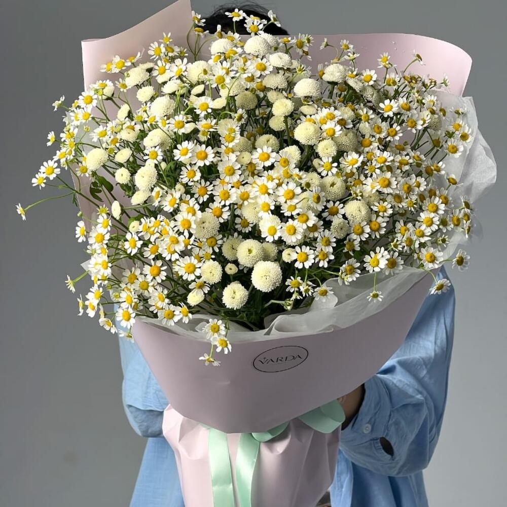 Флористы из студии “Varda Flowers” подобрали свежие и красивые цветы для создания букета, который наполнен положительными эмоциями и любовью. Они тщательно расположили каждый цветок в букете, учитывая его форму и цветовую гамму, чтобы достичь наилучшего гармоничного и красивого результата. Некоторые сезонные растения могут отсутствовать в букете, но флористы подберут похожие цветы без дополнительной оплаты.