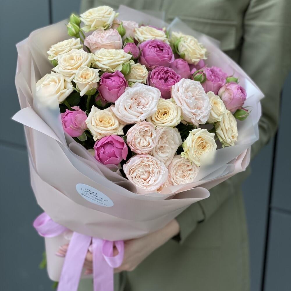 Букет Розовые сладости из 9 веток пионовидных роз