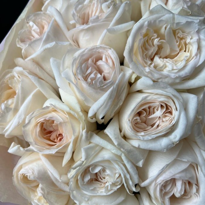 Лента атласная – 1 шт.Упаковка дизайнерская – 2 шт.роза вайт о хара( ароматная) – 25 шт.