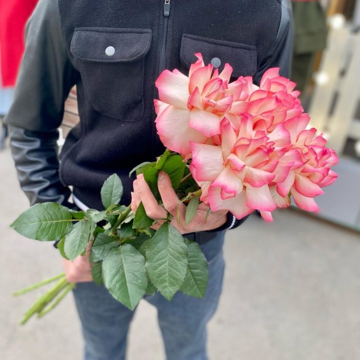 Роза французская – 5 шт.Лента атласная – 1 шт.