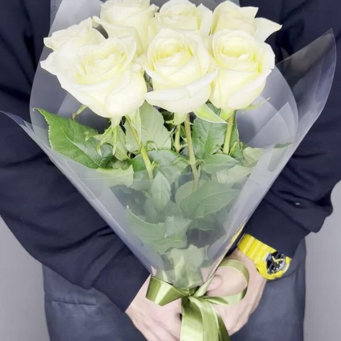Монобукет из 7 ароматных роз в оформлении “Принцесса сердца”