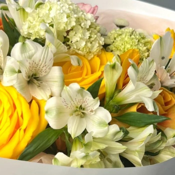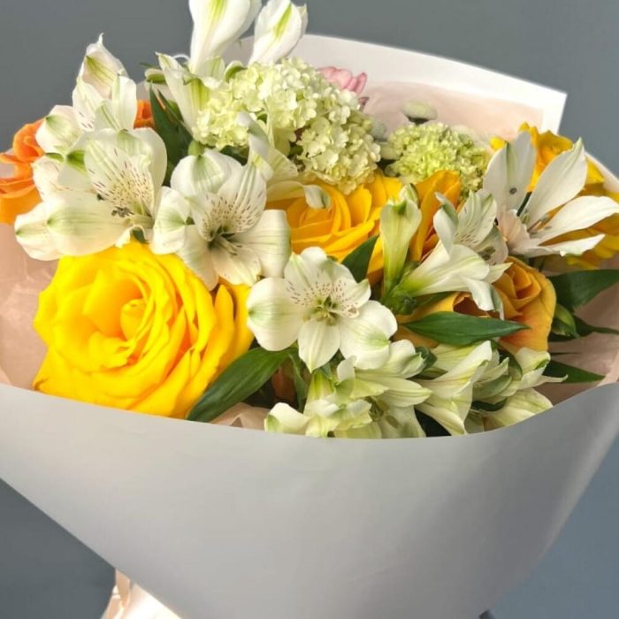 Альстромерия – 3 шт. Вибурнум – 1 шт. Роза – 6 шт.