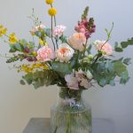 Гвоздики, Лизиантусы, Розы, Тюльпаны